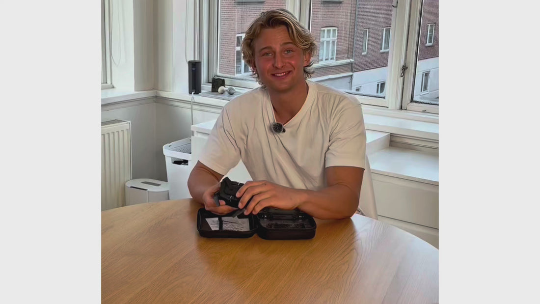 Med to batterier og ca. 12–15 minutters flyvetid hver kan du optage længere ture og flere scener. Skift hurtigt og fortsæt uden lange pauser på stranden eller i parken.